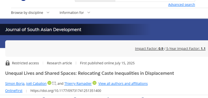 Borja, Simon., Joël, Cabalion., Thierry Ramadier. 2025. “Unequal Lives and Shared Spaces: Relocating Caste Inequalities in Displacement.” Journal of South Asian Development.